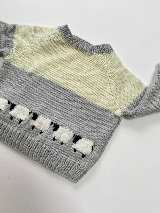 Hand knitted sheep jumper age 3-6m