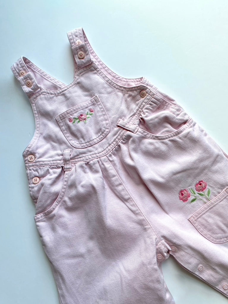 Vintage pink dungarees with embroidered roses age 12-18m